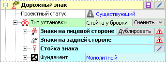 В проекте при этом создаётся не просто дорожный знак, а полноценная трёхмерная установка дорожных знаков. На ней может быть размещено несколько знаков на лицевой и обратной стороне, настроены параметры стойки, фундамента.