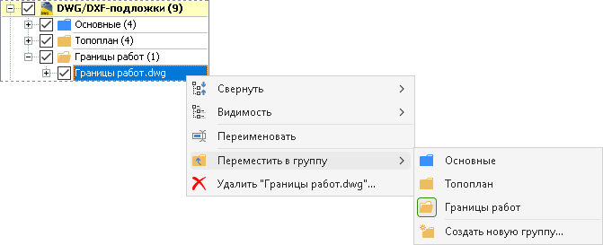 Для этого откройте контекстное меню DWG-подложки в дереве проекта, а затем выберите пункт