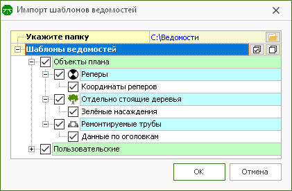 Импорт шаблонов. В открывшемся окне выберите папку с шаблонами ведомостей. Галочками отметьте, какие шаблоны необходимо импортировать.