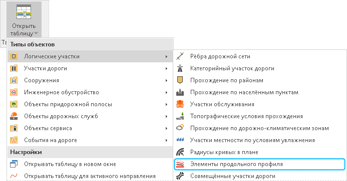 Продольный профиль является отдельной группой логических участков автомобильной дороги. В него входят следующие элементы: