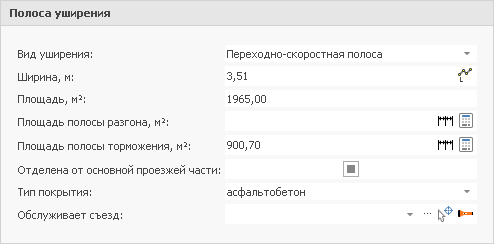 В поле Вид уширения из выпадающего списка выберите: Переходно-скоростная полоса.