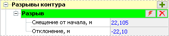 Добавить разрыв в строке Разрывы контура. На контуре разметки появляются управляющие точки, при помощи которых можно редактировать положение участка разрыва.