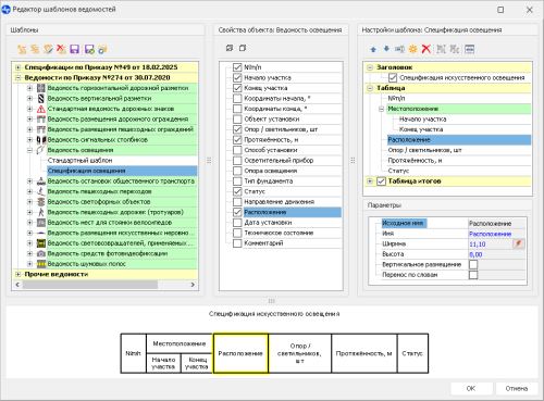 Редактор шаблонов ведомостей в системе IndorTrafficPlan позволяет гибко настраивать вид формируемых отчётов в соответствии с различными требованиями. Доступны настройки как содержания, так и оформления ведомостей. Применение шаблонов может существенно ускорить процесс подготовки проектной документации.
