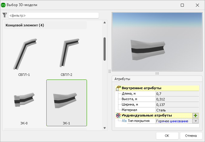 При помощи индивидуальных атрибутов можно добавлять характеристики различным 3D-моделям, которые используются в библиотеках системы.
