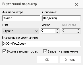 Запрет на изменение. Если включен запрет на изменение, введённое значение по умолчанию нельзя вручную изменить в инспекторе объектов.