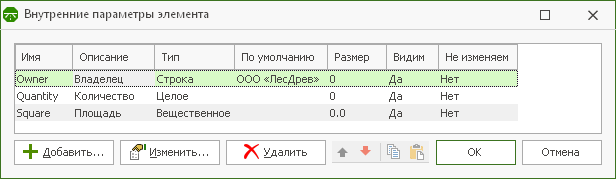 Чтобы изменить параметры атрибута, выделите его в списке окна Внутренние параметры элемента и нажмите кнопку Изменить. Кнопка