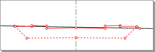 После задания этих настроек в левой и правой части линия ВЗП повторяет существующую поверхность в границах выбранных точек привязки, а дальнейшее прохождение линии ВЗП определяется заданной толщиной дорожной одежды и уклоном сегмента ВЗП.