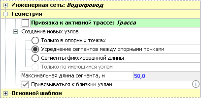 Шаблон элементов сети: основной или дополнительный. После выбора шаблона можно уточнить конструкцию узлов и сегментов создаваемого участка в разделе ниже. Подробности о настройке шаблонов см. в разделе Создание сети и настройка шаблонов оформления.