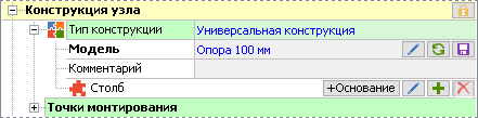 В зависимости от типа опоры в окне редактирования элемента конструкции могут быть доступны дополнительные настройки:
