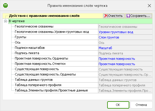 Для слоёв чертежа можно задавать произвольные имена. Это позволяет привести итоговые чертежи в соответствие с внутренними стандартами по именованию слоёв, принятыми в разных организациях. Чтобы задать собственные правила именования слоёв чертежа, нажмите кнопку