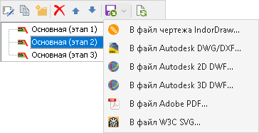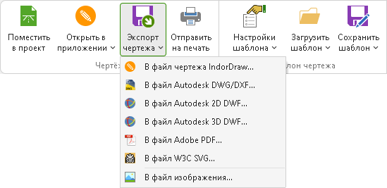 Экспорт чертежа. Они позволяют экспортировать чертёж в различные форматы, в том числе в файлы чертежа IndorDraw, DWG/DXF и пр.