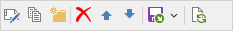 - Панель инструментов. На панели инструментов располагаются кнопки, с помощью которых можно перейти к настройкам чертежа, создать новую папку для организации структуры динамических чертежей, удалить динамический чертёж, переместить его на позицию вверх/вниз, создать копию чертежа с теми же настройками, обновить чертёж. При этом, если выделена папка с чертежами, то можно удалить или переместить всю папку. Также можно осуществить экспорт чертежа в различные форматы (RDW, DWG/DXF, PDF и т.д.).