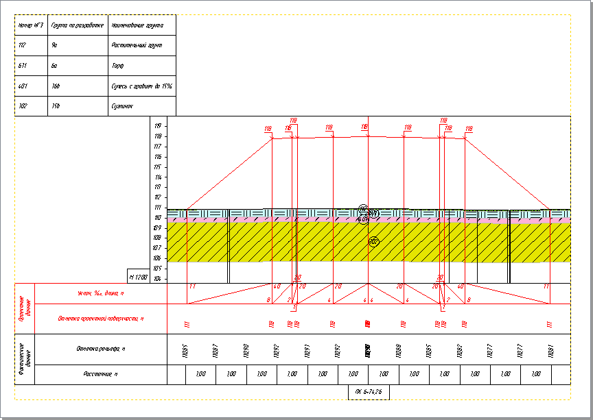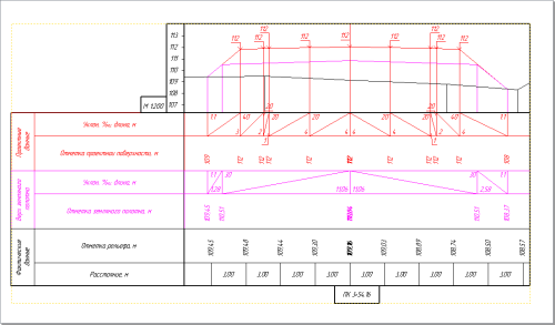 Отдельными блоками в шаблоне представлены подписи пикета, значение масштаба, шкала Z-отметок.