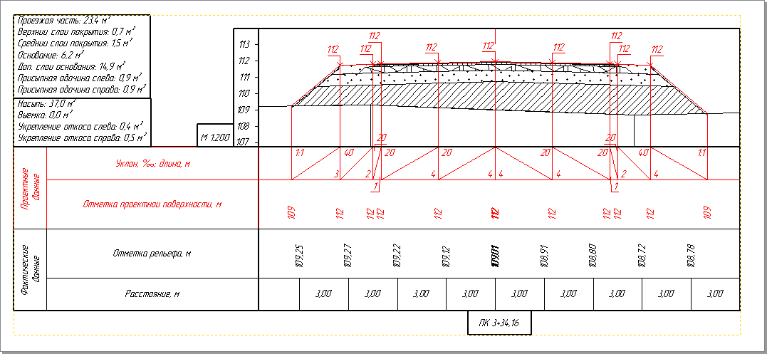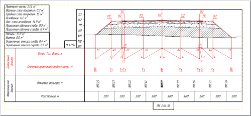 Отметки под узлами проектной поверхности. Чтобы в графе Фактические данные шапки поперечного профиля дополнительно отображались отметки существующей поверхности под узлами проектной поверхности, установите флаг Отметки под узлами проектной поверхности.