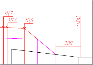 Для линии верха земляного полотна отметки могут подписываться в пределах проектных откосов. Для этого предназначена опция Отметки в пределах проектных откосов.