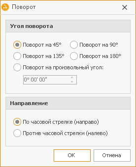 Фигуры можно поворачивать не только визуально на чертеже, но и с помощью кнопок, объединённых в подменю Операции > Поворот и сдвиг >