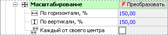 Для задания размера в процентном соотношении с учётом текущего размера введите нужные значения в полях По горизонтали и По вертикали в группе Масштабирование и нажмите кнопку Преобразовать. При установке опции Каждый от своего центра фигуры будут изменяться независимо друг от друга.