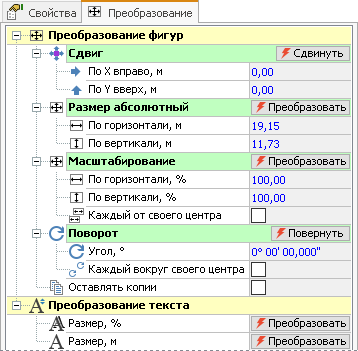 После создания фигур к ним можно применять различные операции преобразования, такие как изменение размеров, поворот, отражение и сдвиг. Выполнить преобразование объектов можно с помощью кнопок на ленте, а также в инспекторе объектов на вкладке Преобразование.