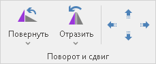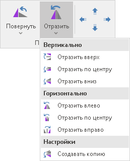 Фигуру или группу фигур можно отразить, используя команды, объединённые в подменю кнопки Операции > Поворот и сдвиг >