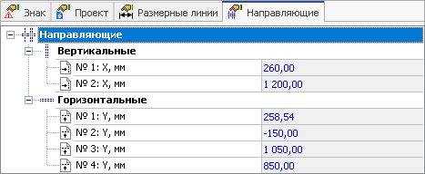 Направляющие. Эта вкладка предназначена для редактирования координат направляющих.